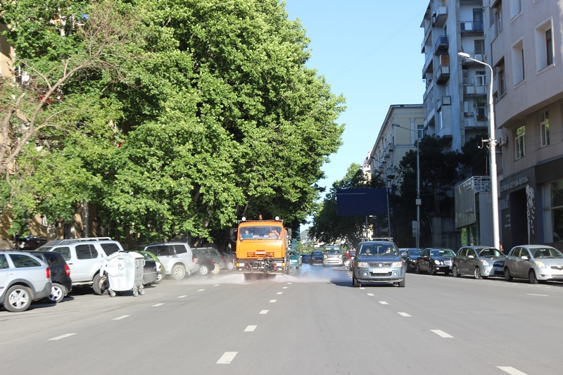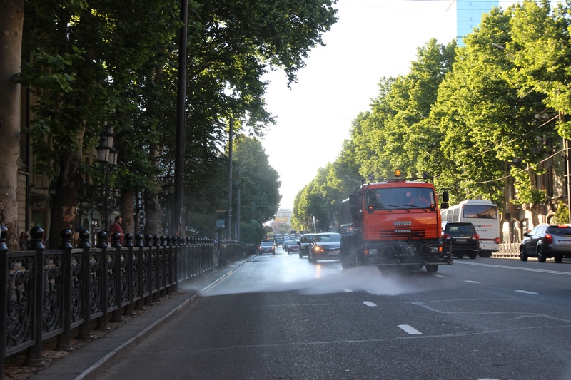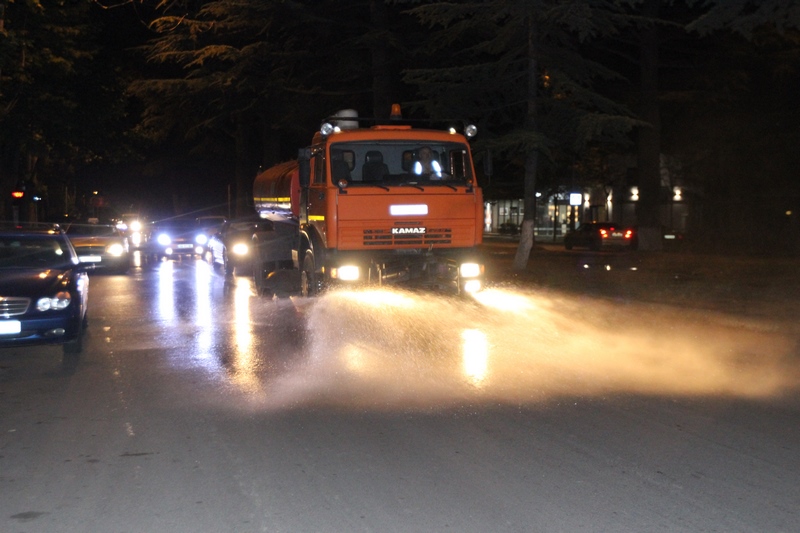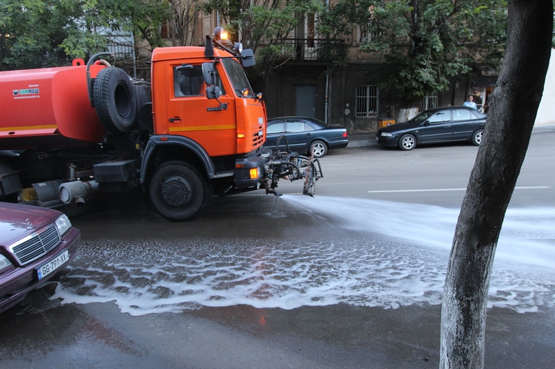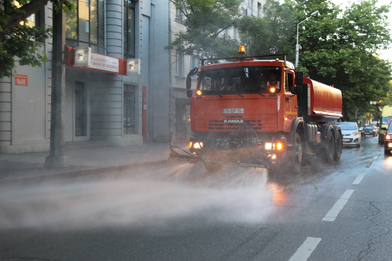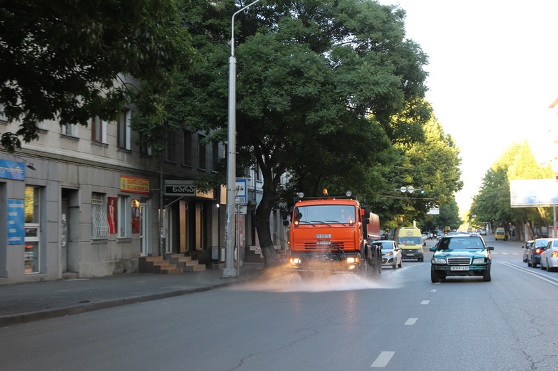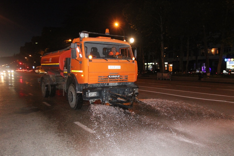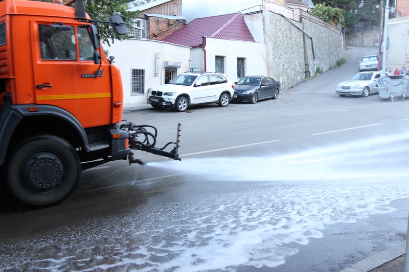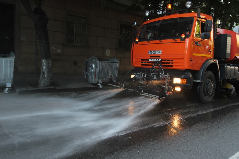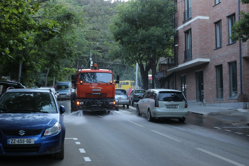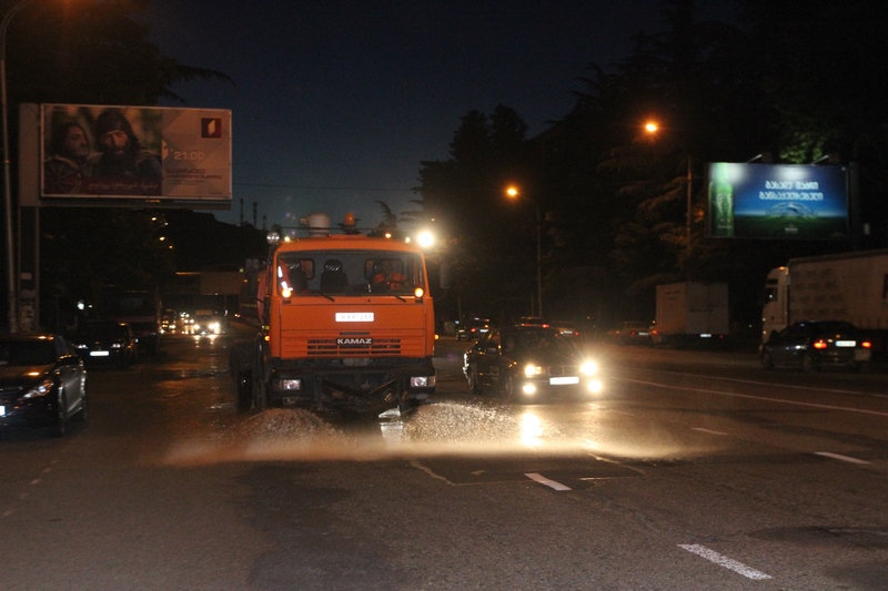 თბილისის ათივე რაიონში გზის მორეცხვითი სამუშაოები მიმდინარეობს