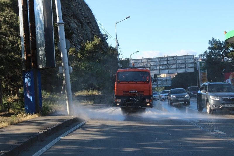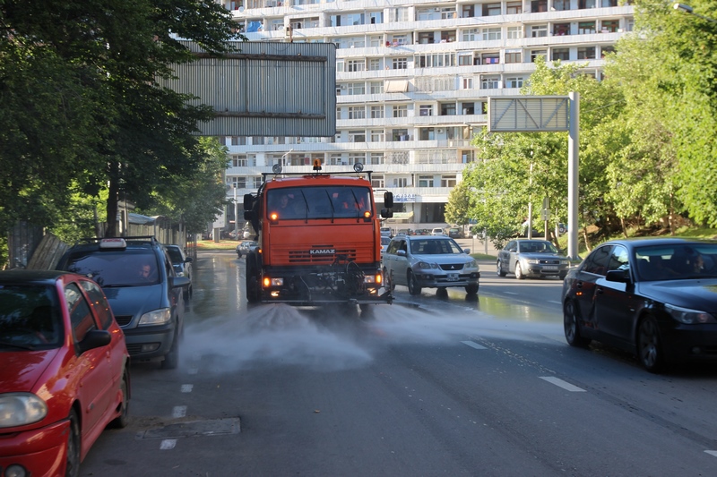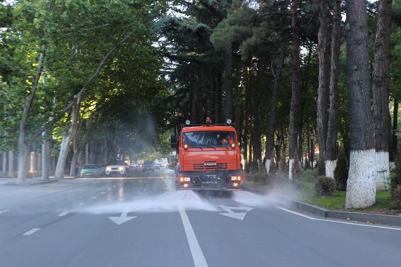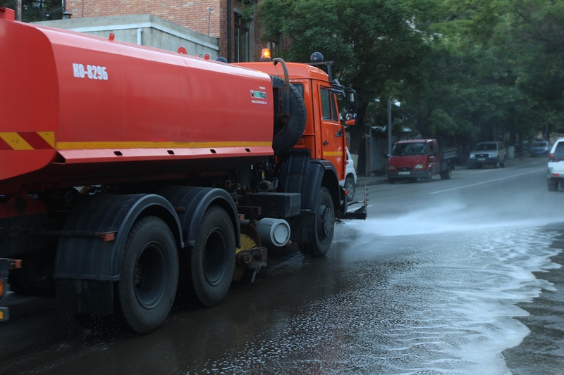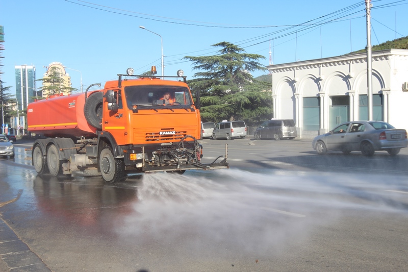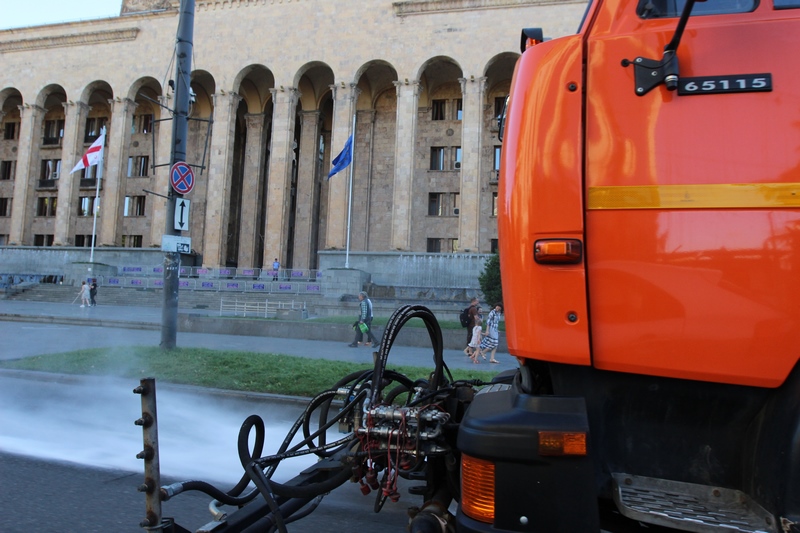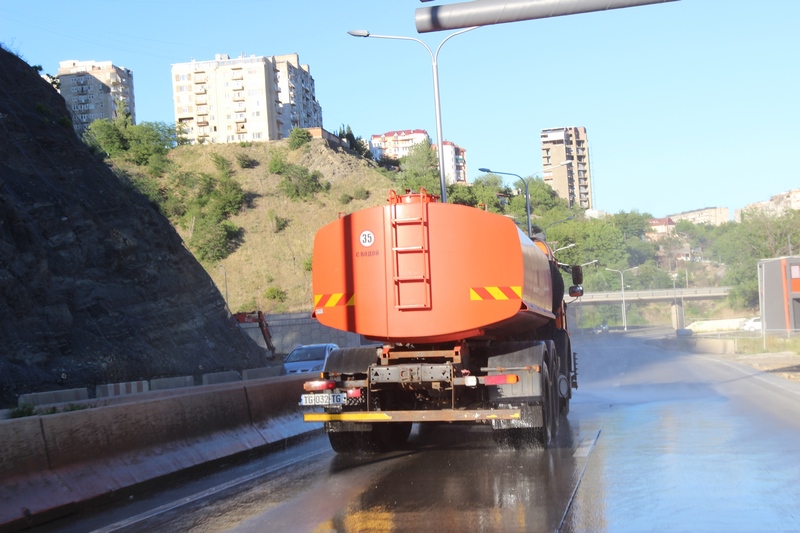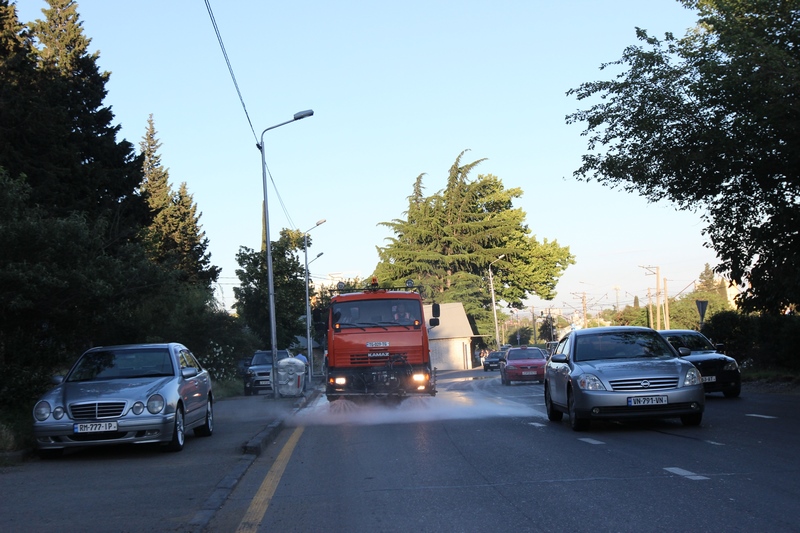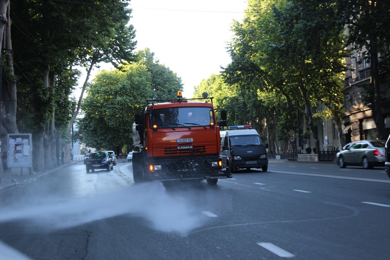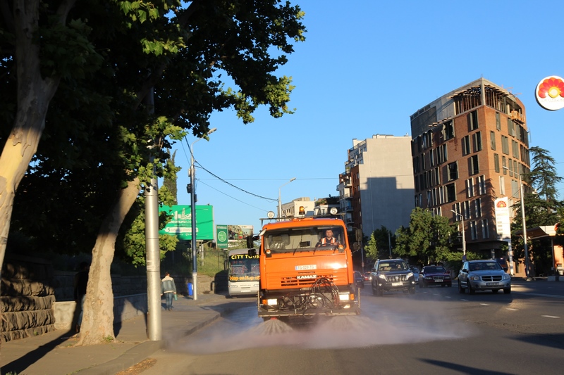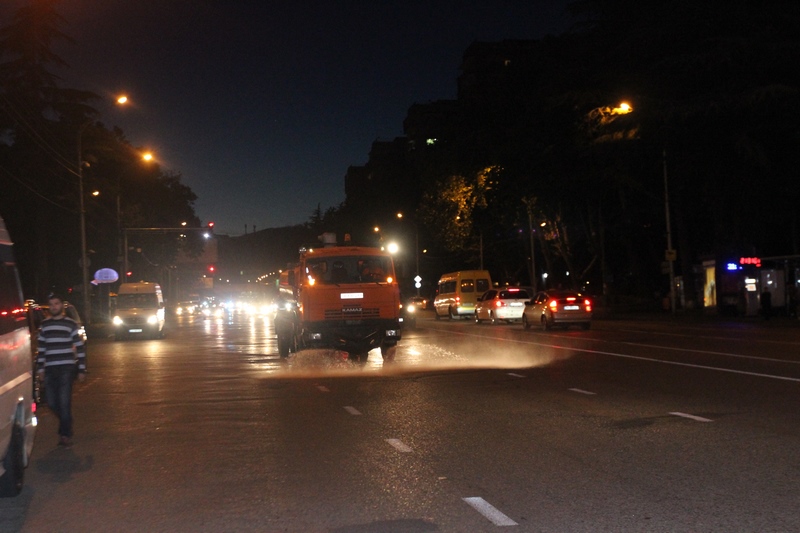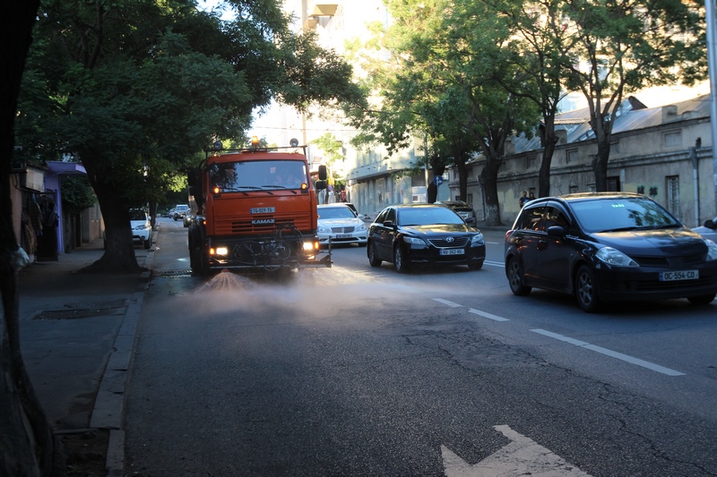 თბილისის ათივე რაიონში გზის მორეცხვითი სამუშაოები მიმდინარეობს