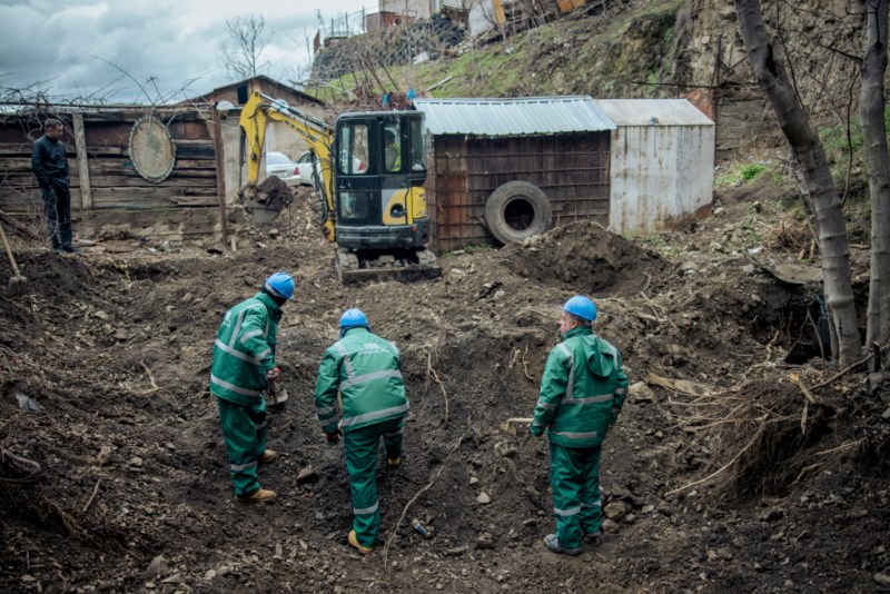 In Krtsanisi district, near Nikoloz Lortkipanidze Street N14, cleaning works of 800 mm drainage collector are underway.