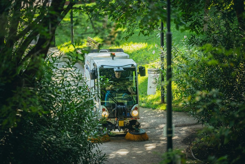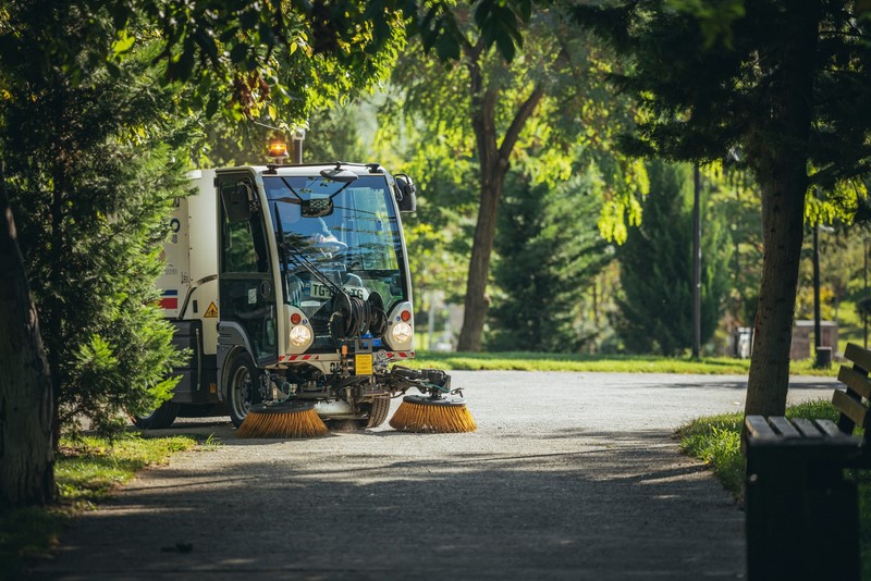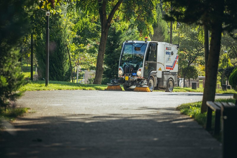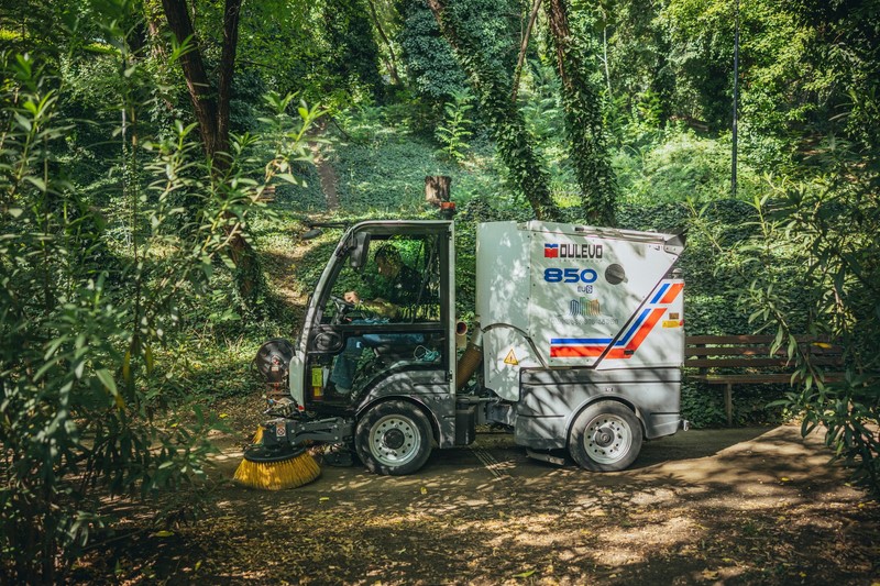 მზიურის პარკში ბილიკები და სავალი ნაწილი მექანიკური დამგველით, ე.წ. სვიპერით სუფთავდება.