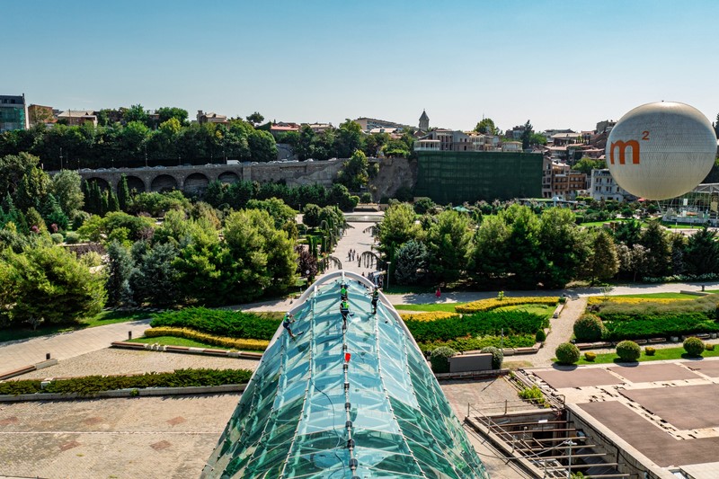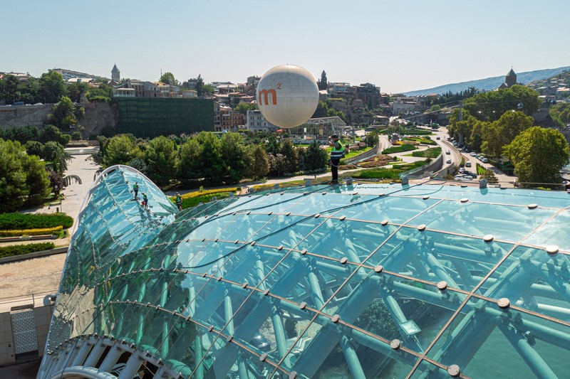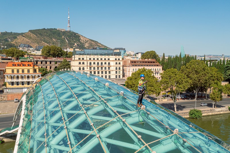 ორივე მხრიდან სისტემატურად იწმინდება და ირეცხება მინის პანელები, ასევე, საფეხმავლო გადასასვლელი. მორეცხვის სამუშაოებს ალპინისტები ასრულებენ.