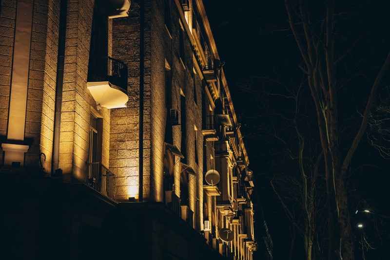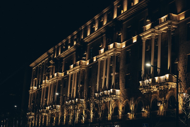 დეკორატიული განათება ისტორიულ შენობაზე