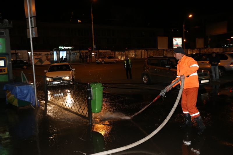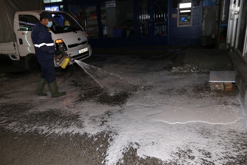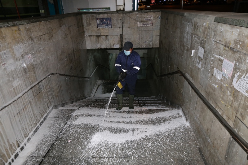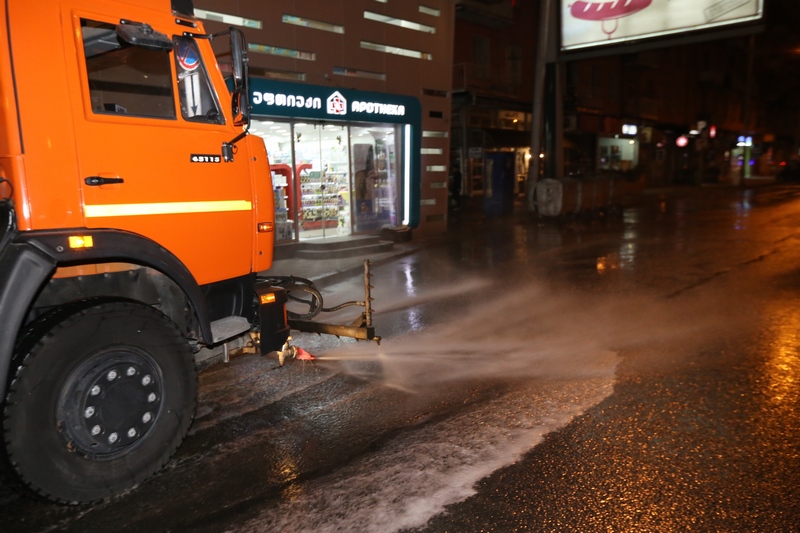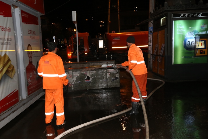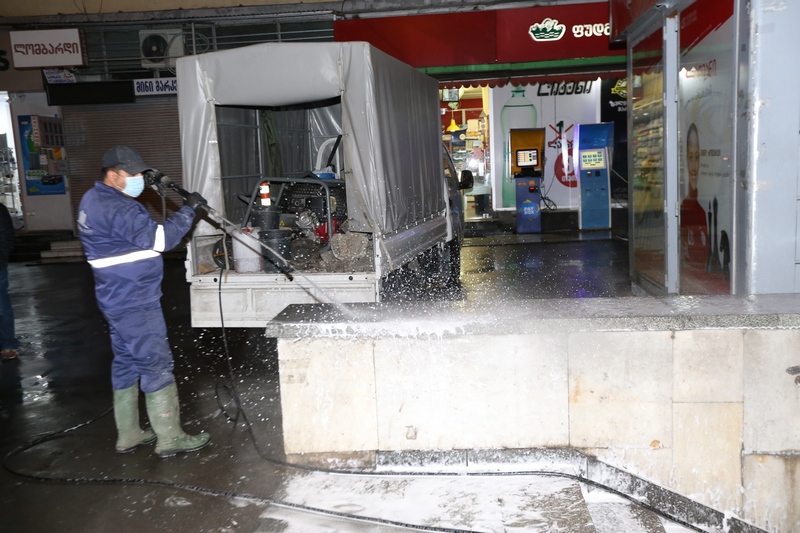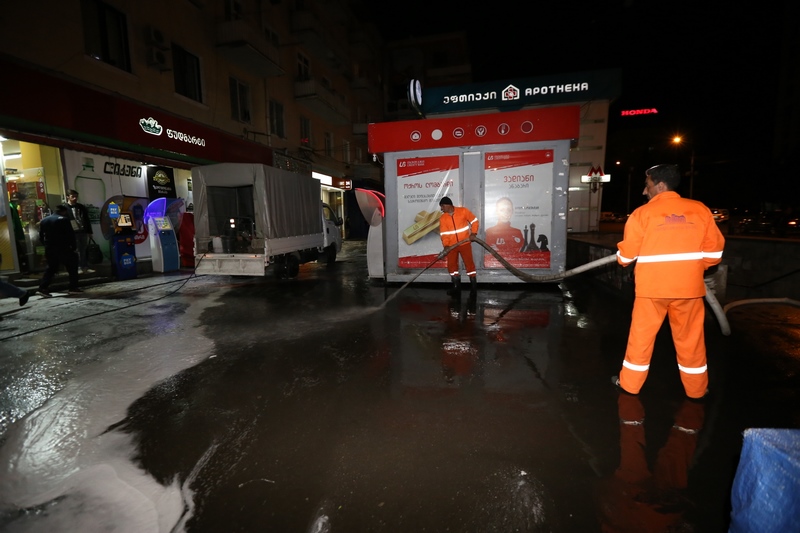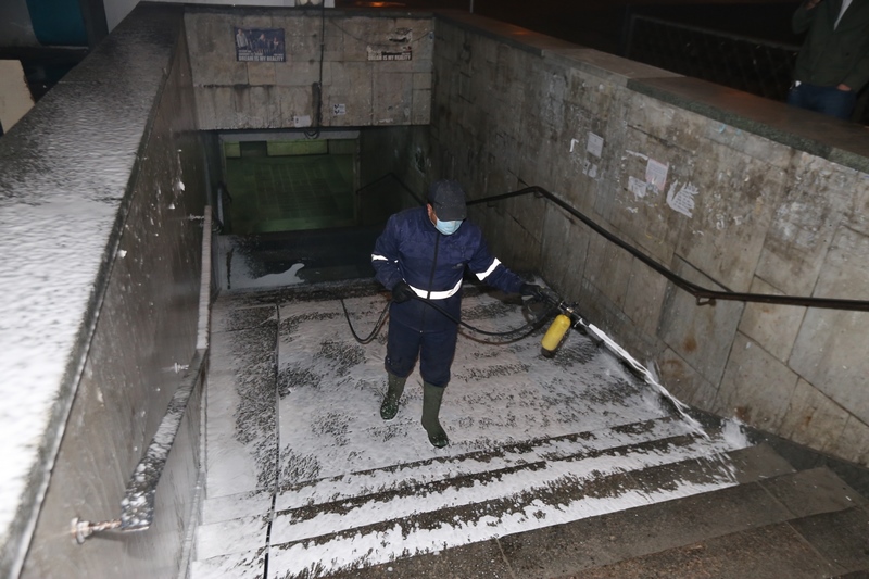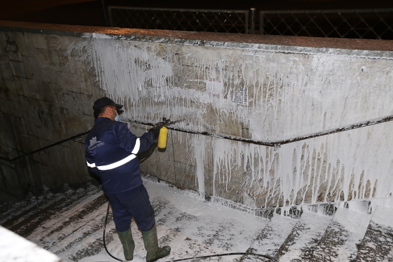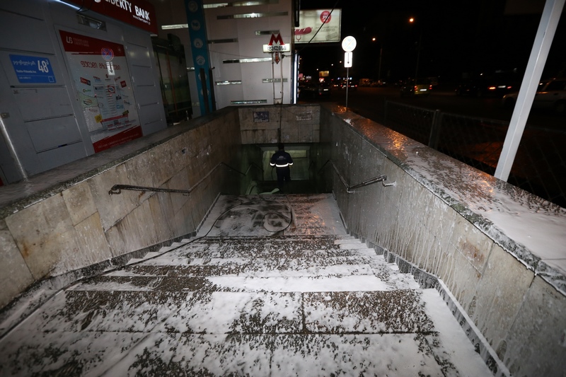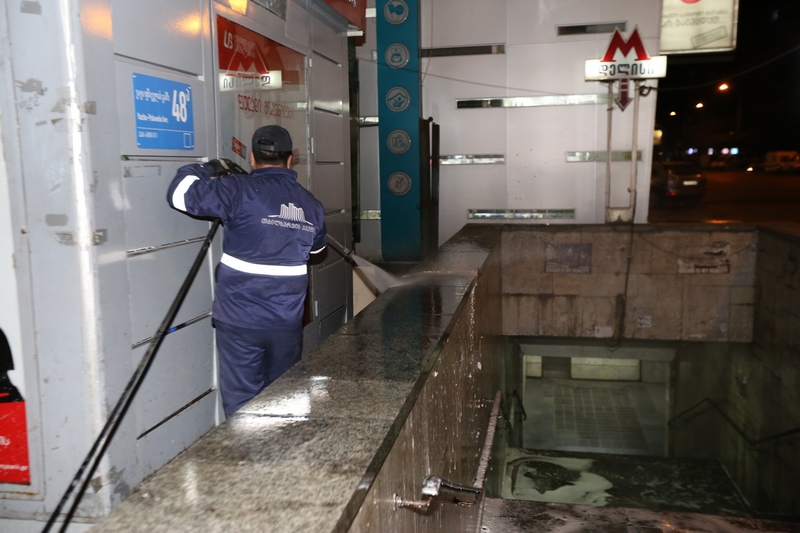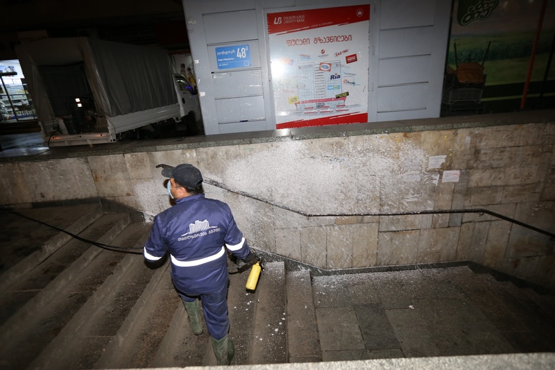 მეტრო “დელისის” მიმდებარე ტერიტორია სპეციალური ხსნარით მოირეცხა