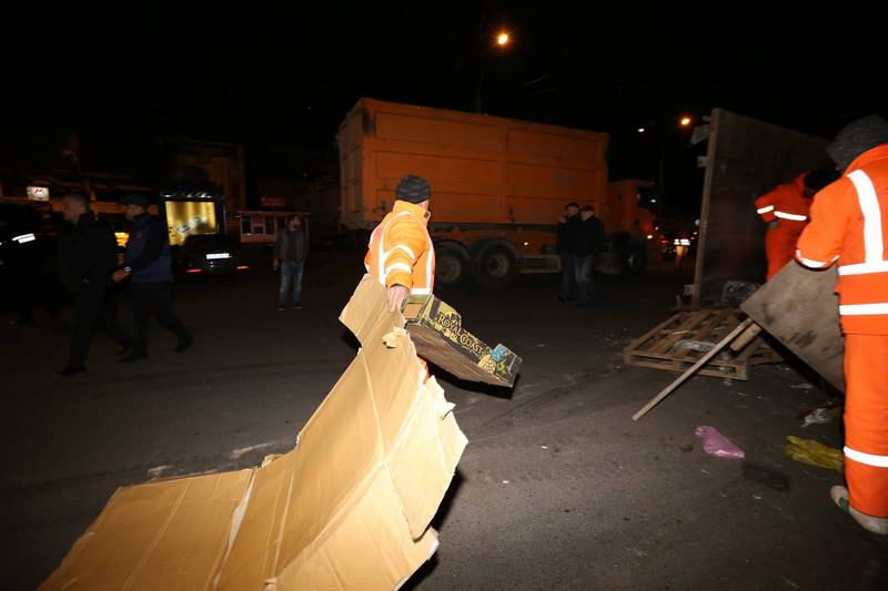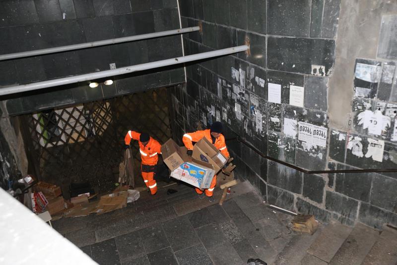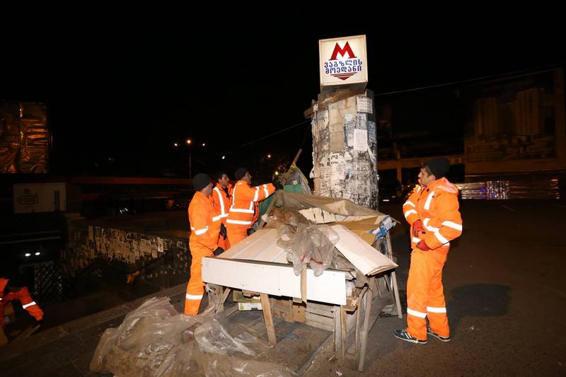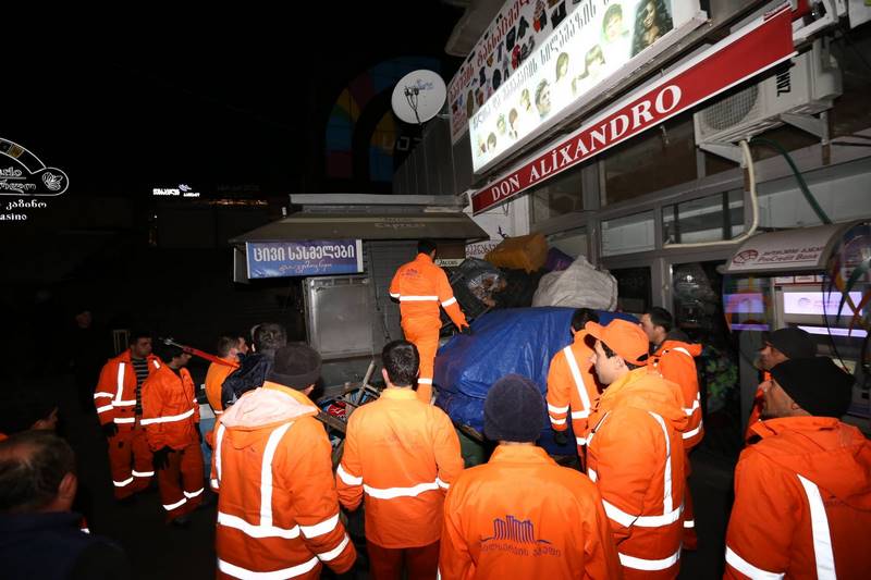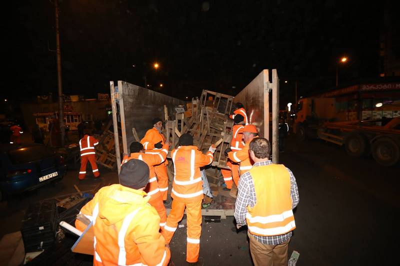 სადგურის მოედანზე უნებართვო კონსტრუქციების გატანა დაიწყო