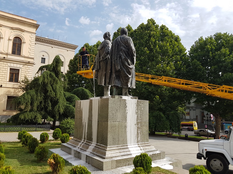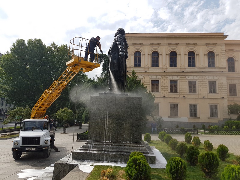შპს „თბილსერვის ჯგუფი“ დედაქალაქის მასშტაბით არსებული ძეგლების მორეცხვით სამუშაოებს განაგრძობს. ამ ეტაპზე რუსთაველის გამზირზე მდებარე „ილიას და აკაკის ძეგლი“ სპეციალური ტექნიკის დახმარებით, ე.წ „კერხერის“ აპარატით მოირეცხა. აღნიშნული სამუშაოები თბილისის სხვადასხვა რაიონში ეტაპობრივად განხორციელდება. #თბილისი2017