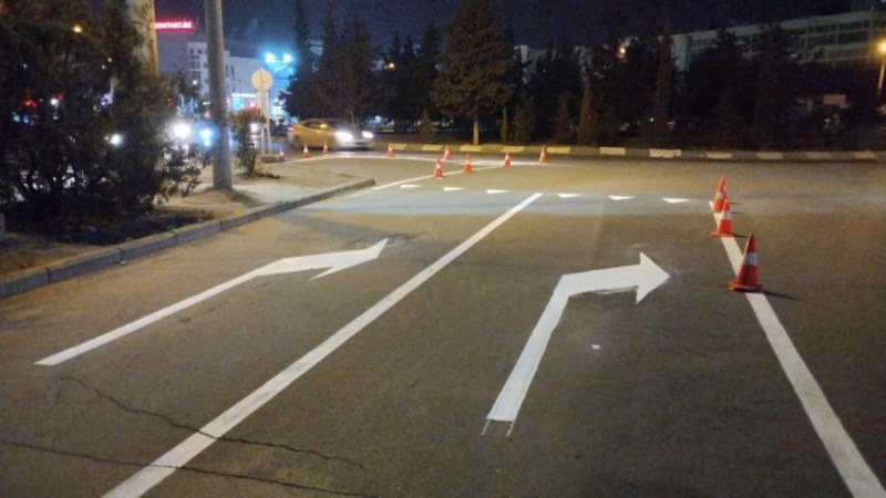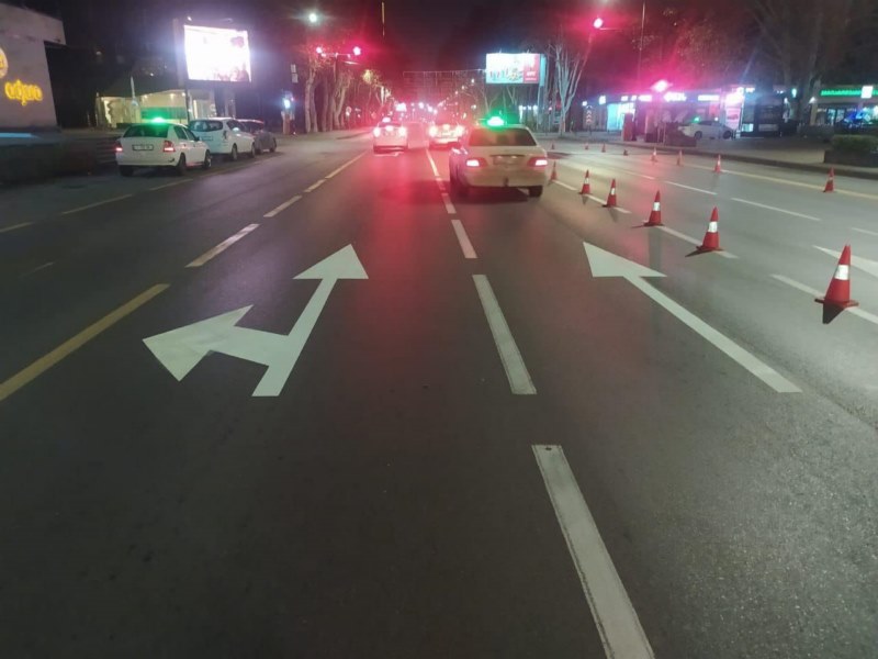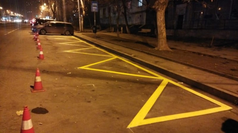 აღნიშნულ მისამართებზე, ცივი პლასტის და აკრილის საღებავით დაიხაზა გზის გამყოფი ზოლები, ,,სდექ” ხაზები, ,,დაუთმე” ნიშნები, მიმმართველი კუნძულები, მოძრაობის მაჩვენებელი ისრები, ქვეითთა გადასასვლელები და ველობილიკები, ჯამში, საგზაო მონიშვნები 1507, 23 კვ. მ გზის საფარზე დაიხაზა.