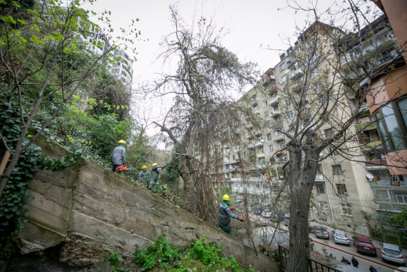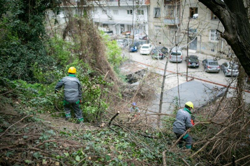 შპს „თბილსერვის ჯგუფის“ თანამშრომლებმა ფერდობი საყოფაცხოვრებო ნარჩენებისგან გაწმინდეს, ხეების სხვლა-ფორმირების სამუშაოები კი შპს „ეკოსერვის ჯგუფმა“ შეასრულა.