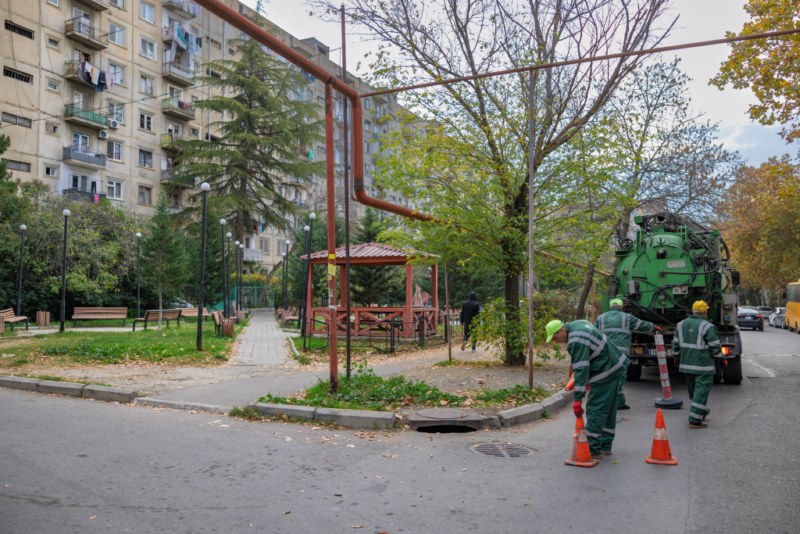 მათ შორის, გლდანის მე-5 მიკრორაიონში, ჯაბიძის ქუჩაზე, სადაც სანიაღვრე ქსელი სპეცტექნიკის საშუალებით გაირეცხა.