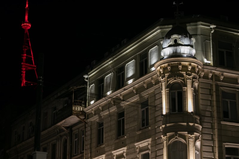„თბილსერვის ჯგუფის“ თანამშრომლებმა შენობის ფასადზე 59 ერთეული ახალი LED პროჟექტორი დაამონტაჟეს.