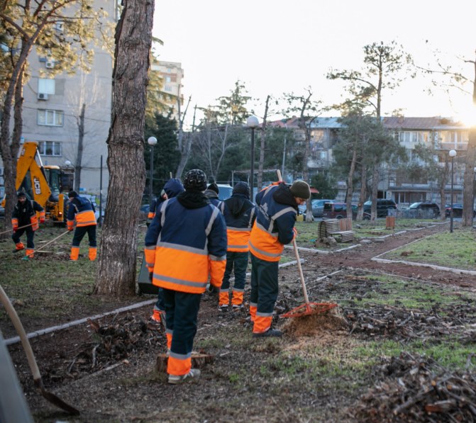 ვაჟა-ფშაველას მე-6 კვარტლის N1 კორპუსსა და მე-7 კვარტლის N1 კორპუსს შორის არსებული სკვერის დასუფთავების სამუშაოები.