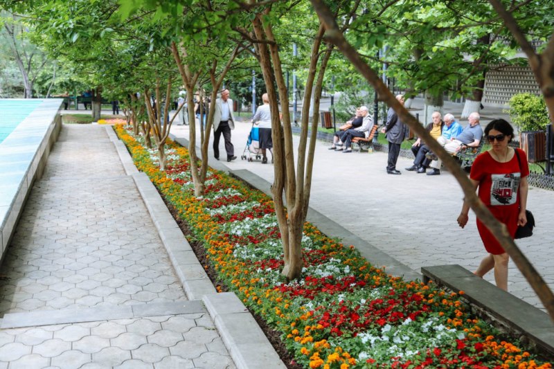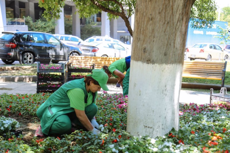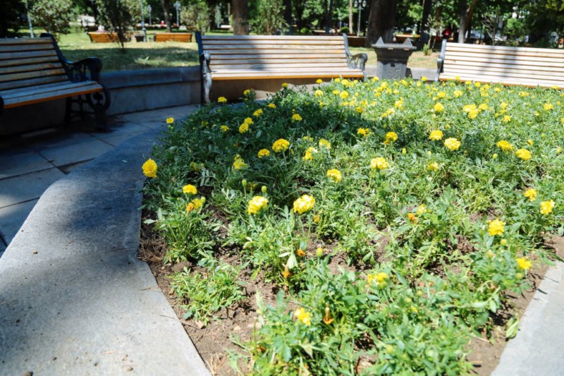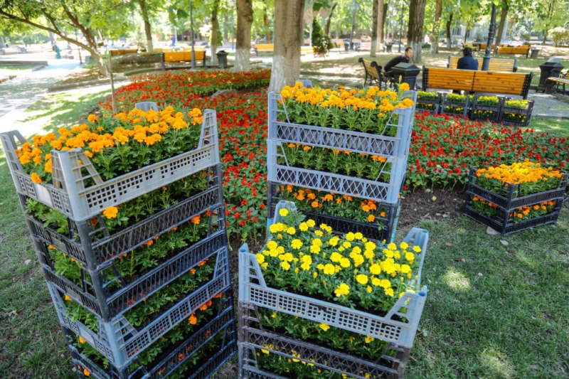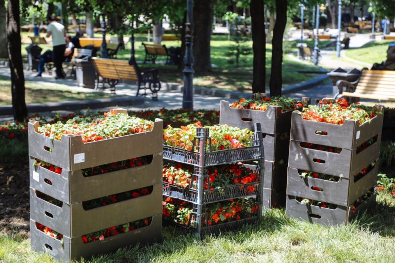 პარკებსა და ბაღებში გამწვანების სამუშაოები მიმდინარეობს
