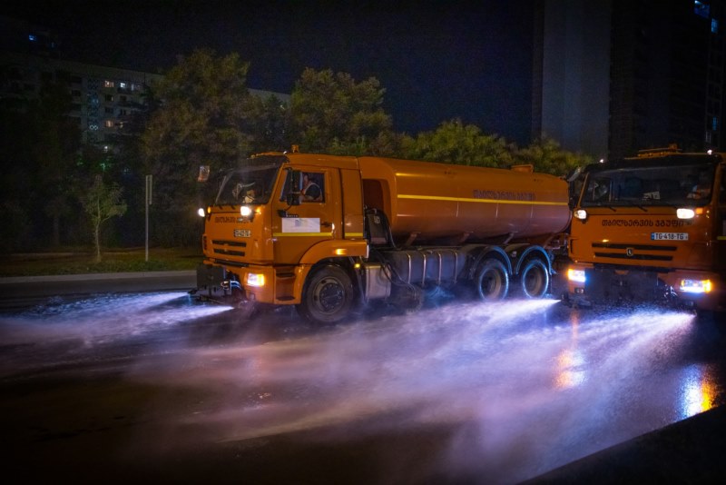 იმისათვის, რომ დედაქალაქში საგზაო მოძრაობა არ შეფერხდეს, ცენტრალური და მეორეხარისხოვანი გზების მორეცხვა ღამის განმავლობაში მიმდინარეობს.